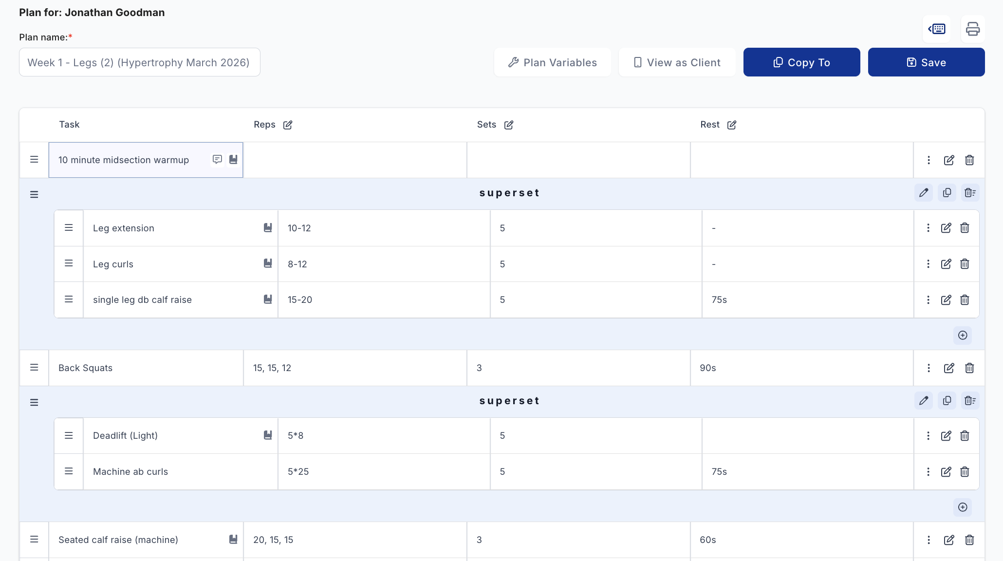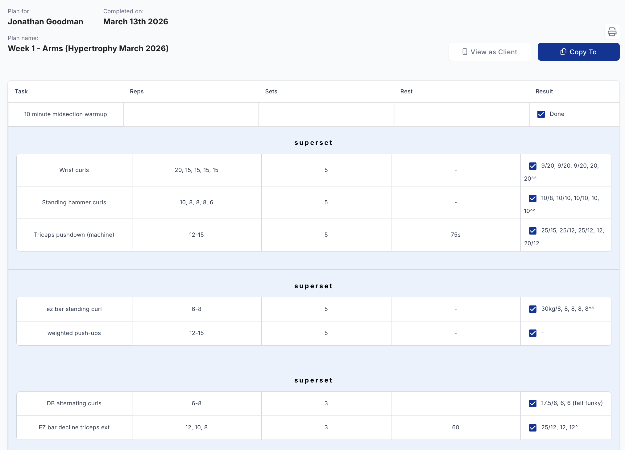 An example program. This is the chest/back. (I'm using QuickCoach to build my programs and track.)